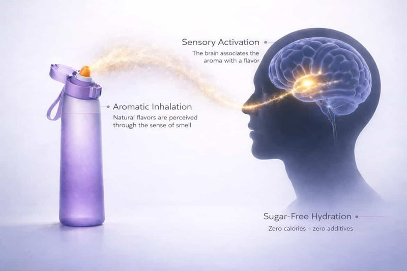 Scent pods release natural aromas as you sip. Your brain perceives flavor through smell, making water taste fruity and exciting without any actual flavoring. Science-backed hydration innovation.